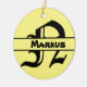 Lightweight, smooth, pure white ornament with nice sheen. Perfect size to be seen from across the room ... and to attract closer inspection! Price was great for ordering enough for the whole family! Clear, bold black design just as requested. Matches the order exactly. Just so nice!