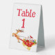 A Customized Christmas Tabletop Numbered Tent Sign With Santa, Sled And Reindeer