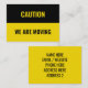 you can customize the front side: with a Caution, Warning, Safety remarks - such as We are moving