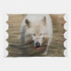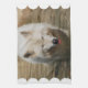White wolf wading into shallow water for a drink.