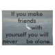 Purchased for a sister who throws Halloween block parties. Even with all the other stuff she has for this, I know she does not have this Exact one. Yeah personalization! Placemat has nice heft and is seamed around the edges well. Purchase complementary items too. Print is clear and well centered.