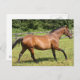 Thoroughbred horse trotting through a field with tall grass.