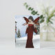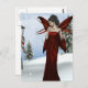 Holiday winter fairy in a brilliant red gown enjoying the snow.