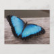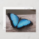 Pretty blue morpho butterfly on a fence.