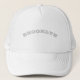 Customize text, name grey curved letters white trucker hat