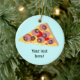 Add a slogan or name to create a personalized gift with a pizza theme. Image shows a triangle of pizza topped with cheese, pepperoni and sliced black olives.