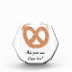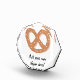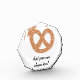 Add a slogan or name to create a personalized gift with a pretzel theme. Image shows a German style pretzel knot of bread (or could be an American crunchy pretzel snack) studded with salt crystals.
