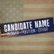 Use this template to type in your slogan on a patriotic bumper sticker! Add a candidate name and slogan for a one-of-a-kind campaign bumper sticker.
