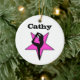 Lightweight, smooth, pure white ornament with nice sheen. Perfect size to be seen from across the room ... and to attract closer inspection! Price was great for ordering enough for the whole family! Clear, bold black design just as requested. Matches the order exactly. Just so nice!