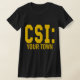 We supply the CSI, you supply the town! Simply use the customize button to change the text that says YOUR TOWN, to whateever town, city or name you like. And voila! a personalzied CSI Crime Scene Investigations t-shirt, mug, or other gift. Further customize your product with additional text, or add images, or change background colors, or do anything you like to make it unique!