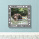 Add your own dog's photo to this square art canvas and then personalize it with your pet's name. This is a beautiful piece of artwork that frames your picture with images of hearts, paws and bones. The gray background can be changed to match your photo. What a perfect gift for dog moms and grandmas as well as all pet lovers. A perfect way to remember your dog angel!