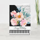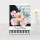 cute piano with sheet music, edit greeting, and your own accent piece (floral, etc.)