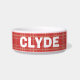 You can customize our red plaid design pet dish with your dog or cat's name before ordering.