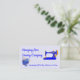Custom sewing business card done in pale blue, with graphics of a blue and gold sewing machine, in the middle. Personalize all the text fields for your business needs. Chose card stock you prefer with this design.