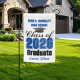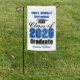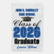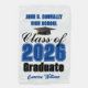 Customize your blue school Class of 2026 graduate garden flag for a graduation party. Cool varsity letters for the year on a great custom commemorative gift for seniors.