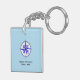 Customize this keychain with your "Captain's" name. Makes a great gift for the sailor in your family. Blue Sailboat logo is featured on the front above your captain's name. A compass appears on the reverse with space for you to add contact information. You choose type style, size, and color.