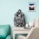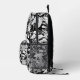 Fresh backpack design features a monogrammed tropical leaf pattern in black and white with gray accents. The flowers repeat on the front, top, and sides. A stylish template with an accent on the front pocket in black and white allows for customization with one or two initials. Message me via Zazzle if you want to change another color.