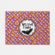 Welcome friends and trick or treaters with this Crazy Candy Corn on a purple background door mat! A spooky black bat flies by looking for something sweet to nibble on! You can personalize the text for your own clever message! Several shapes and sizes available.