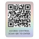 Create a sleek, minimalist-style template for a custom white QR code access control door lock sign. This design allows for easy customization with your company logo, QR code, and personalized text, such as "Scan to gain entry."