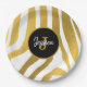 Customized Faux Gold Zebra Print Stripes Pattern Paper Plates