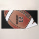Bath Towel. Featured in a black background with a football and the player's name and number. The perfect gift for the sport enthusiast in your life. This design can also be made for a coach...just change the number to say "COACH" or anything else you would like. ✔Note: Not all template areas need changed. 📌If you need further customization, please click the "Click to Customize further" or "Customize or Edit Design" button and use our design tool to resize, rotate, change text color, add text and so much more. ⭐This Product is 100% Customizable. Graphics and / or text can be added, deleted, moved, resized, changed around, rotated, etc... ⭐99% of my designs in my store are done in layers. This makes it easy for you to resize and move the graphics and text around so that it will fit each product perfectly. 📌 (Please be sure to resize or move graphics if needed before ordering) You can also "TRANSFER DESIGN" on other Zazzle products and adjust the design to fit most of Zazzle items. (button is down on the right side of the page) This design is made with high resolution vector and/or digital graphics for a professional print. 📌NOTE: (THIS IS A PRINT. All Zazzle product designs are "prints" unless otherwise stated under "About This Product" on the left side of this page) The design will be printed "EXACTLY" like you see it on the screen and on the product...so please make sure when you do your changes on the resizing of any of the graphics or text that it fits in the areas correctly and that your spelling and wording is how you like it to be in size, color and font. If you have any questions about the "DESIGN ONLY" or need help please contact me at ✉ siggyscott@comcast.net or visit my store link: https://www.zazzle.com/store/designsbydonnasiggy (Copy and Paste) I'll be happy to help. 📌 ALL OTHER QUESTIONS (shipping, refund, the printing, the product, etc...) please contact Zazzle or the Maker ⭐DIRECTLY⭐. Thank you for the support and stopping by my store - DesignsbyDonnaSiggy. © Donna Siegrist⭐⭐⭐ ZAZZLE promises 100% satisfaction. If you don't absolutely love it, Zazzle will take it back! ⭐⭐⭐ 1-888-8ZAZZLE (1-888-892-9953) Phone hours: Mon - Fri: 9AM - 5PM PT (12PM - 8PM ET)