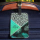 Customized Glittery Teal Tropical Leopard Print Luggage Tag