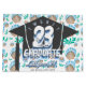 Personalized graduation bag with cute original hand drawn digital illustration pattern of sea shells that are made with the ocean and sand. Green leafy seaweed plants around surround them. Easily update the template with the grad name, date, and school name. Colors in this design are white, black, blue, and green. This gift bag is great for tropical graduation themed parties. Design by Ms_Jade. © Ms_Jade