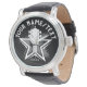 Cool custom watch for guitar players. Great gift for men who love to play guitar. Personalize it with their name and a date to make it the coolest guitarist gift ever. Any guitar player will love this personalized watch. It's a wonderful gift for birthday, anniversary, Christmas or any special occasion. Great personalized gift for him. Loud riffs. Cool vibes. Make it personal. Make it rock!