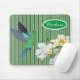 A Beautiful Green Striped Mouse Pad Design With A Colorful Green Hummingbird And White Summer Flowers You Can Add Name