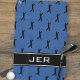 Design features a repeating pattern of a solid black swinging golfer figure on a classic blue background. A thick black band has two small white accent stripes at the border and custom monogrammed initials (or short word) in white. Customize colors or keep as created. Color of background and fonts are easily changed in design tool section. Email me at beachpausedesigns@gmail.com if you have questions about this or any of our designs!