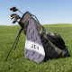 Design features a repeating pattern of a solid black swinging golfer figure on a trendy purple background. A thick white band has two small matching purple stripes at the border and custom monogrammed initials (or short word) in black. Customize colors or keep as created. Color of background and fonts are easily changed in design tool section. Email me at beachpausedesigns@gmail.com if you have questions about this or any of our designs!