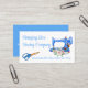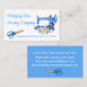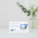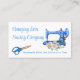 Custom sewing business card done in white, with graphics of a light blue old fashioned sewing machine, with pretty watercolor flowers and a pair of scissors. Personalize all the text fields for your business needs. Chose card stock you prefer with this design.
