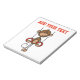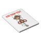 A stick figure monkey gymnast on the rings and text that is super easy to customize on a note pad that makes a great gift for the gymnast or coach you know!