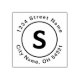This simple, modern custom stamp features a large monogram initial inside a circle. The address is written around the outside of the circle.