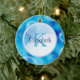 Customized Monogram on Whimsical Blue Bubbles Ceramic Ornament