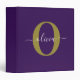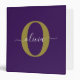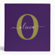 Customized Monogram Script Name Purple White Gold 3 Ring Binder