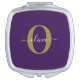 Customized Monogram Script Name Purple White Gold Compact Mirror