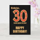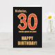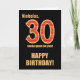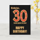 A contemporary 30th birthday card to customize for anyone but which may particularly appeal to a man. There is a large number 30, outlined in gold-effect and filled with bright red, orange and green stripes, on a black background. The front cover greeting says, '30 looks good on you! HAPPY BIRTHDAY!' in bold gold-effect lettering and there is room at the top for you to add the name of the recipient. The inside message can also be personalized.