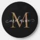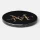 Create your own personalized black round wireless charger with your custom pretty handwritten script name and monogram.