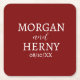 CUSTOMIZED NAME STYLISH MODERN BURGUNDY WEDDING SQUARE PAPER COASTER