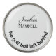 The joke on this divot tool and golf ball marker reads, "No Golf Ball Left Behind". It is easy to customize with a first and last name in simple modern typography. The first name in classic script nicely balances the last name in unique stylized all caps typography. The type used for the last name is versatile because there are two ways to type it out for slightly different looks. Use "caps lock" so all the letters are the same size. Capitalize only the first letter and type the rest of the name in lower case, and the lower case letters will still be in all caps, but just a bit smaller than the capital letter. You can give this practical divot tool and golf ball marker to your family and friends as customized gifts. Visit the Collection for more customized golf accessories and gear.