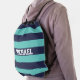 Customized Navy Blue Turquoise Stripes Drawstring Bag