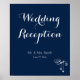Customized navy blue wedding reception sign print with customizable text - you can add bride's and groom's name and wedding date. Dimensions of the sign print (poster) are 20 inches by 24 inches.