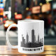 Customize these chic New York city vacation mugs for your family trip to the big apple. Features a great black and white drawing of the Manhattan skyline and the Statue of Liberty above your personalized text. Cool skyscrapers souvenir for your trip.