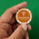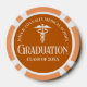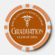 This custom orange medical school graduation party poker chip features classy white typography under a medical caduceus and your college name for the class of 2026. Customize with your graduating year under the elegant calligraphy for great personalized university graduate favors for a nurse or doctor.