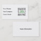 This is a fully customizable business card that uses QR Scan Codes. QR codes are like big bar codes with white and black dot patterns. They allow you to encode text, a URL, a phone number or SMS on stationery and allow anyone to read the code and display the content on their mobile phone with a QR Scan code facility (Many makes of mobile phones can now read the codes with an application and their built-in camera).
