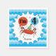 Personalized Red Crab 4th Birthday paper napkins, cute and colorful, great for any ocean or sea theme birthday party, features a red crab in a polka dotted party hat holding red and blue balloons surrounded by confetti! These ocean red crab paper napkins have a border of blue waves and text that reads I'm 4! You can easily add the birthday child's name to personalize these fourth birthday red crab napkins. We have the matching crab 4th birthday paper plates, T-shirts, and more!
