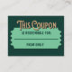 Customized Redeemable Ticket Gift Idea Coupon Card