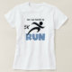 A black silhouette runner, blue text that reads RUN, and areas you can easily customize with your charity or event name and race whether it is a 5K, 10K, 26.2 or 13.1! Runners looking for awesome colors and styles of T-shirts and other running apparel will appreciate the ease of ordering this custom design T-shirt!
