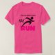 A black silhouette runner, hot pink text that reads RUN, and areas you can easily customize with your charity or event name and race whether it is a 5K, 10K, 26.2 or 13.1! Runners looking for awesome colors and styles of T-shirts and other running apparel will appreciate the ease of ordering this custom design T-shirt!